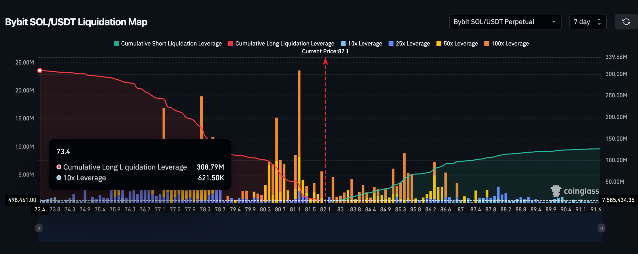 Di sisi lain, level support krusial terletak di sekitar $78. Titik ini juga merupakan konsentrasi likuidasi long sebesar sekitar $175 juta. Jika level support ini jebol, potensi penurunan bisa semakin tajam akibat efek likuidasi berantai yang dapat memicu kepanikan di pasar.